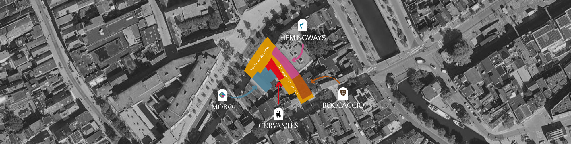 Het mooie is: in de Via Vecchia kun je alle kanten op. Letterlijk! Wil je genieten van klassieke Toscaanse gerechten, dan loop je Boccaccio Bottega Toscana binnen. Zin in tapas? Bij Cervantes word je op je wenken bediend. Of wellicht gaat je voorkeur uit naar de Cubaans/Caribische keuken. De kaart en ambiance van Hemingway’s Cuba staan garant voor een heerlijke ontdekkingsreis. Minstens zo smaakvol en avontuurlijk is Moro, waar de geraffineerde Zuid- Mediterrane keuken steeds weer blijft verrassen!